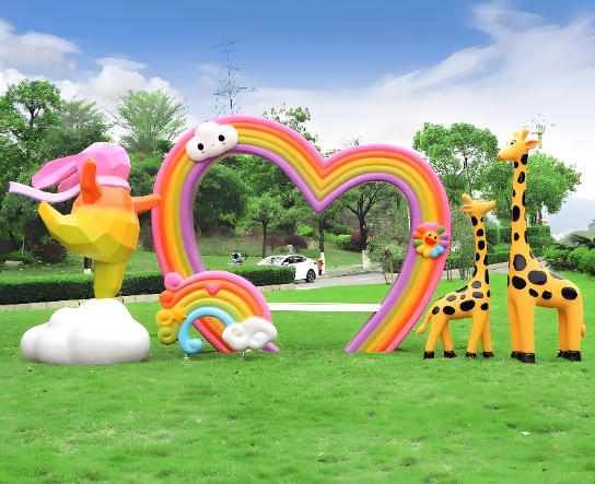 玻璃钢雕塑由于玻璃钢容易成型,可以根据需要制作成各式各样的形状,特别是景区园或小区里面,经常用玻璃钢制成各式各样的雕塑,款式新颖,造型生动。颜色也可以喷成五颜六色,色彩鲜艳,线条流畅,极受人们欢迎。